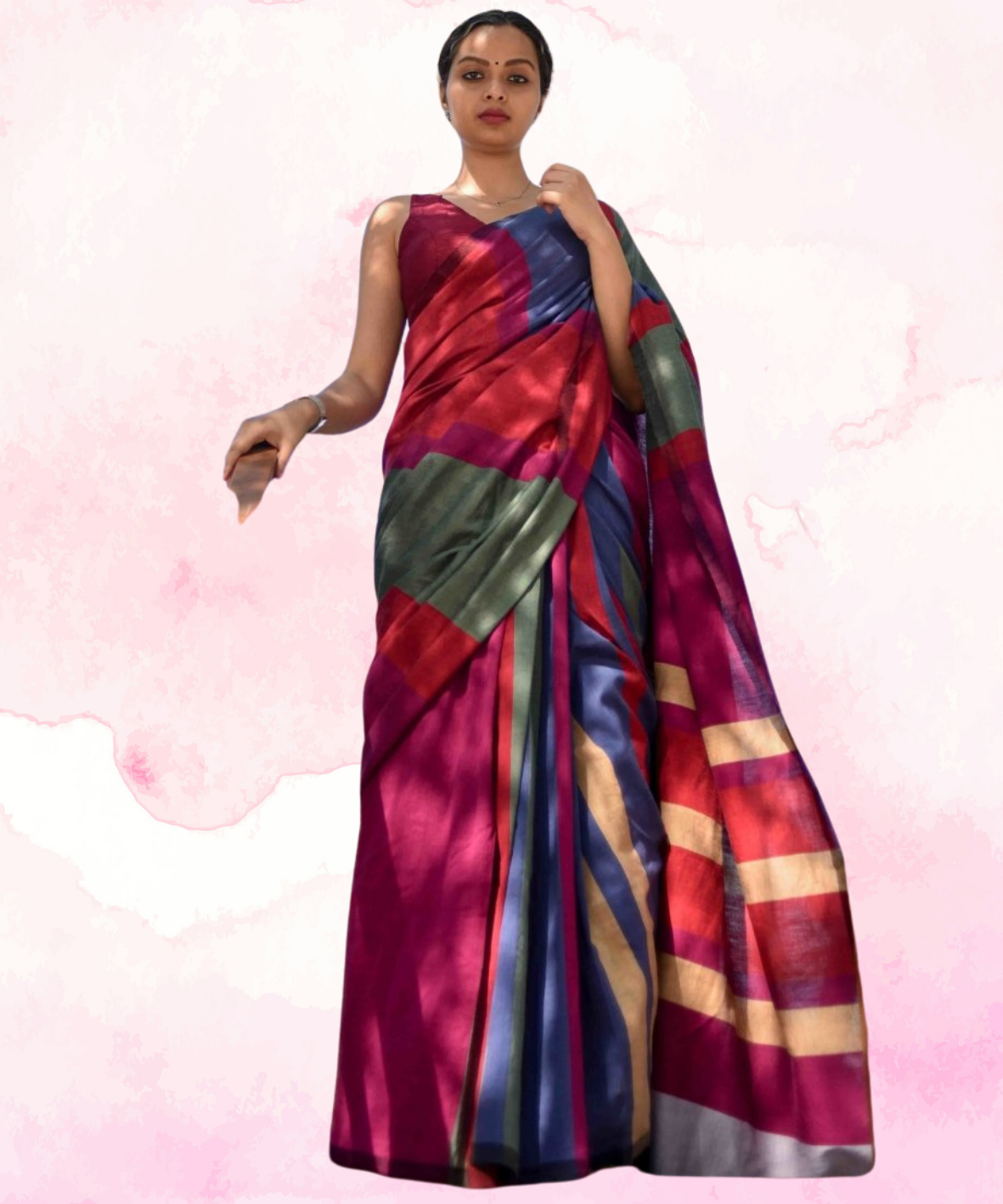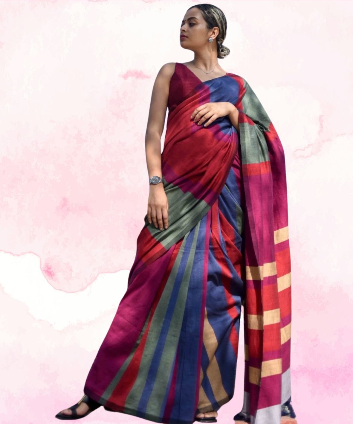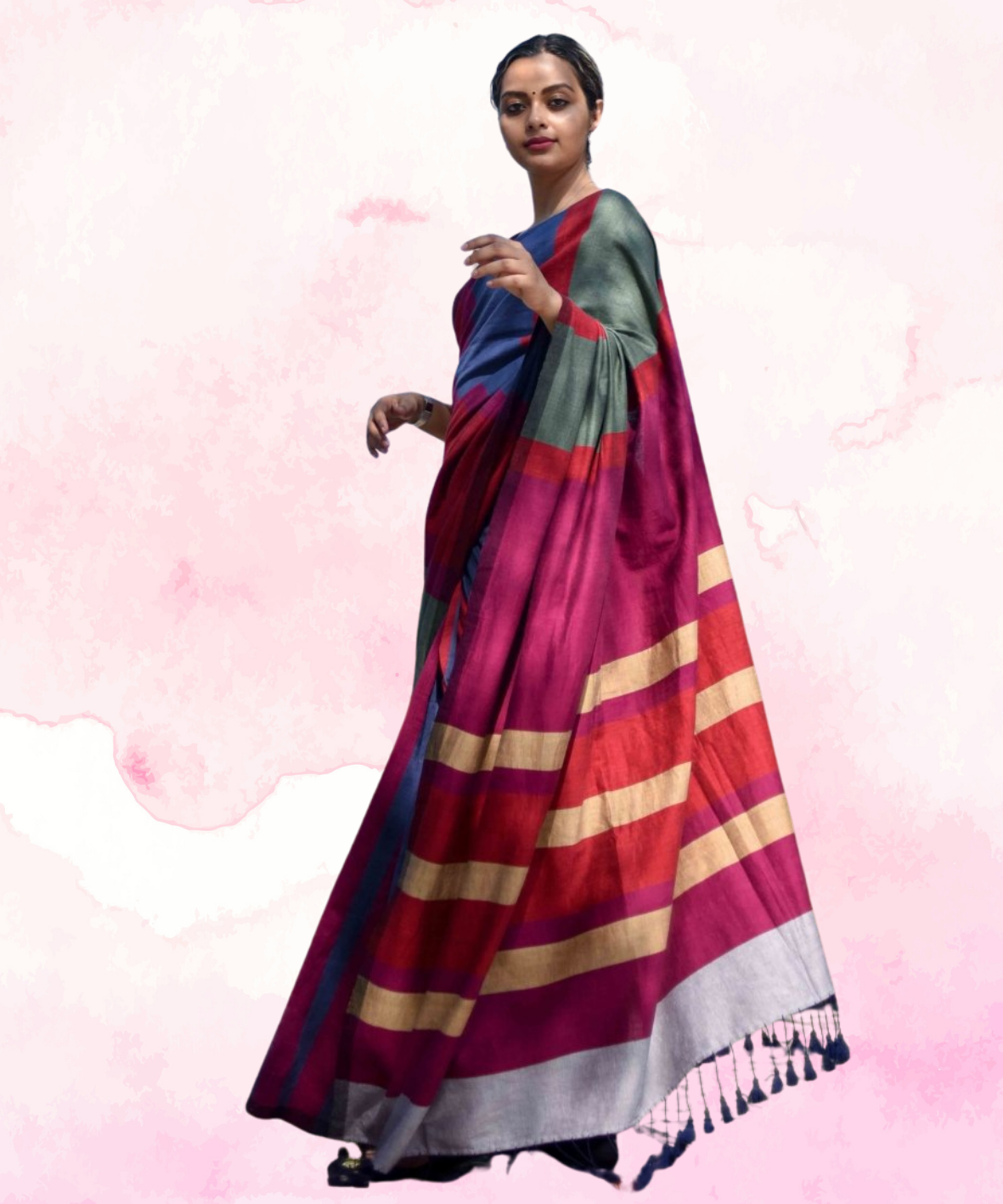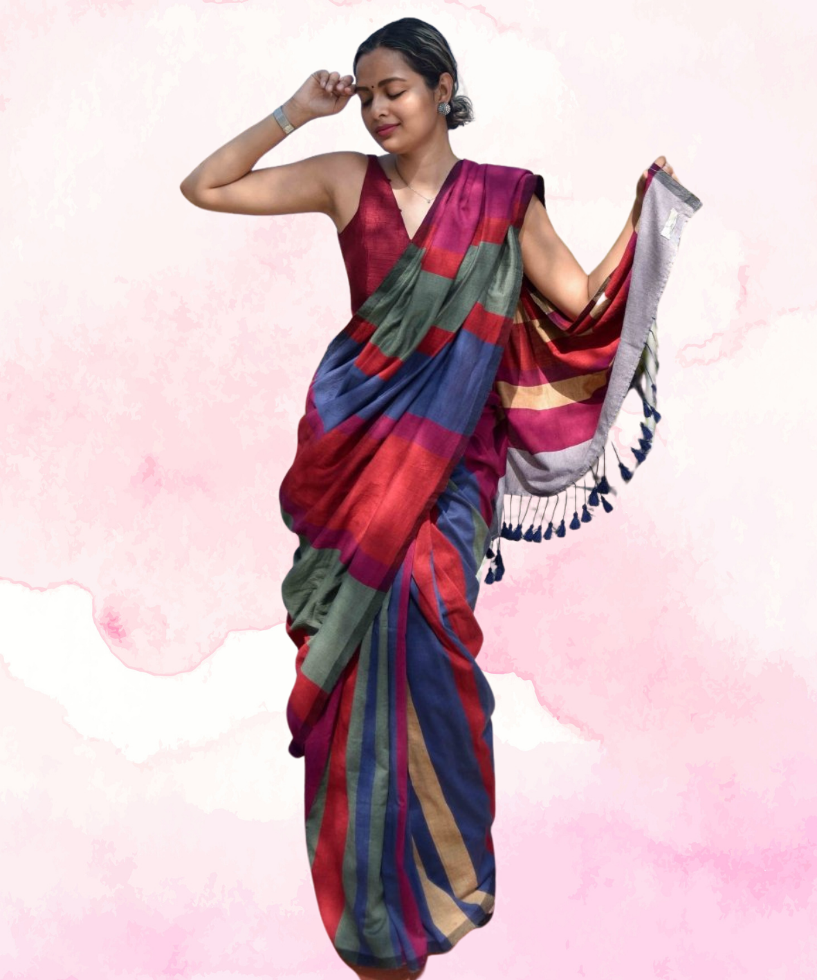 • Material: Khadi Cotton Color Bar Saree with Blouse