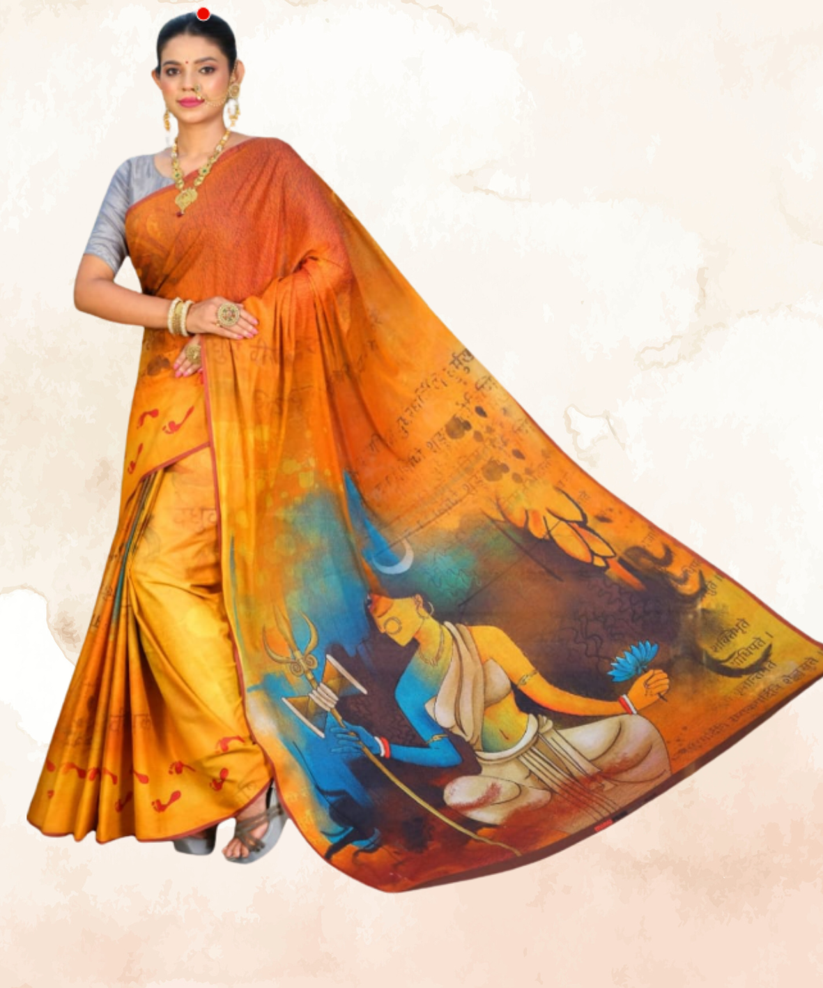 Saree can be directly worn over anything – Shorts, Leggings, Jeans, Plazos, etc.